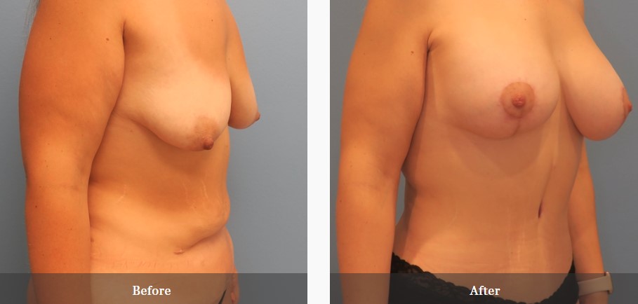 This patient went to Derrick Plastic Surgery in Plano Texas to consult with Dr. Chase Derrick regarding a Mommy Makeover/Body Contouring. This patient was unhappy with the loose skin on her abdomen and breast after having children. She wanted to tighten up her abdominal muscles and add some volume back as well as lift her breast that were affected by significant weight loss. Her goals were achieved and Dr. Derrick and the patient are both very happy with the results.