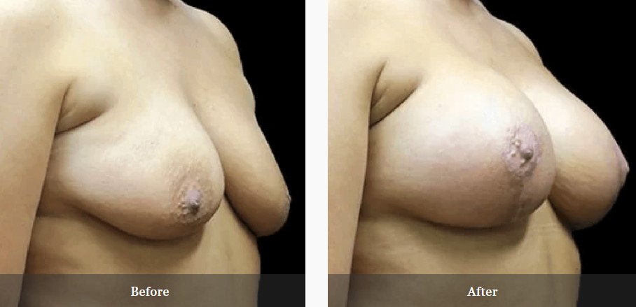 This young mother sought out Dr. Derrick for a lift and additional volume. She underwent mastopexy augmentation with 415cc full profile gel implants in our Sherman, TX surgery center. She is seen here preop and only 3 weeks post-op.