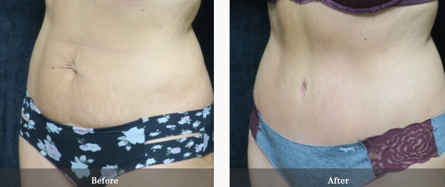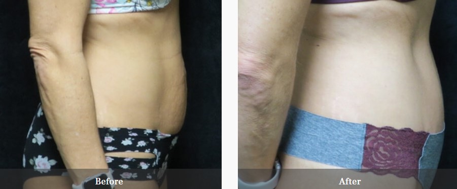 Dr. Derrick performed an Abdominoplasty on this patient in her 40’s to remove excess skin from child birth.